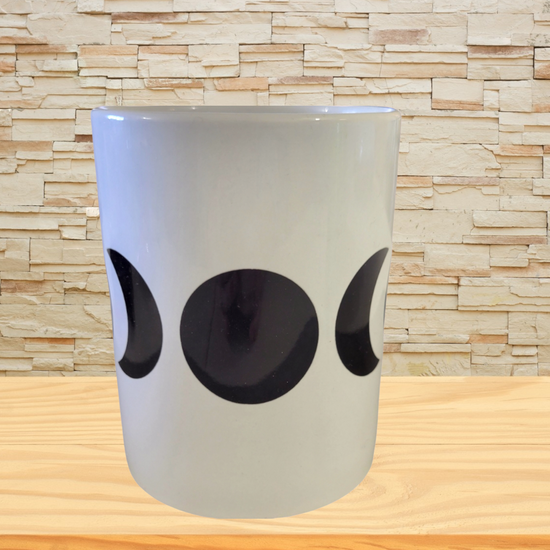 Sip your morning coffee in style with this elegant mug showing the phases of the moon. 15oz mug is dishwasher and microwave safe as long as handled with care.